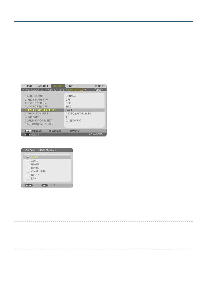 4. Pressthe▼buttonvetimestoselect[DEFAULTINPUTSELECT] and press the ENTER