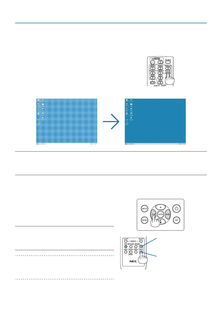 • Ontheremotecontrol,presstheVOL.(+)or(−)