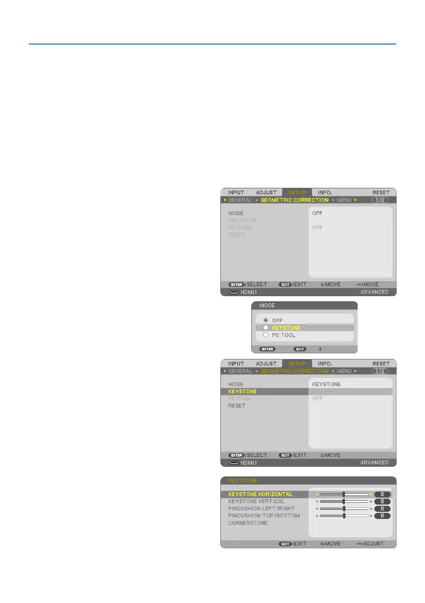 either [CORNERSTONE] or [PINCUSHION] has corrected, [KEYSTONE HORIZONTAL] and [KEYSTONE