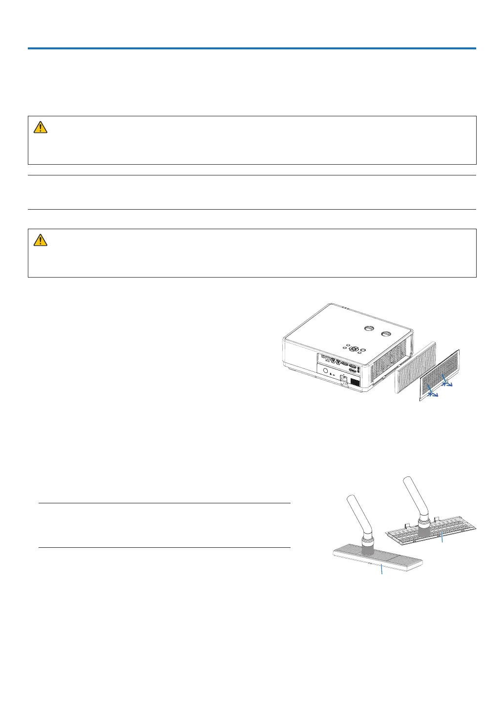 • Before cleaning the filter, turn off the projector, disconnect the power cord and then allow the cabinet to cool.