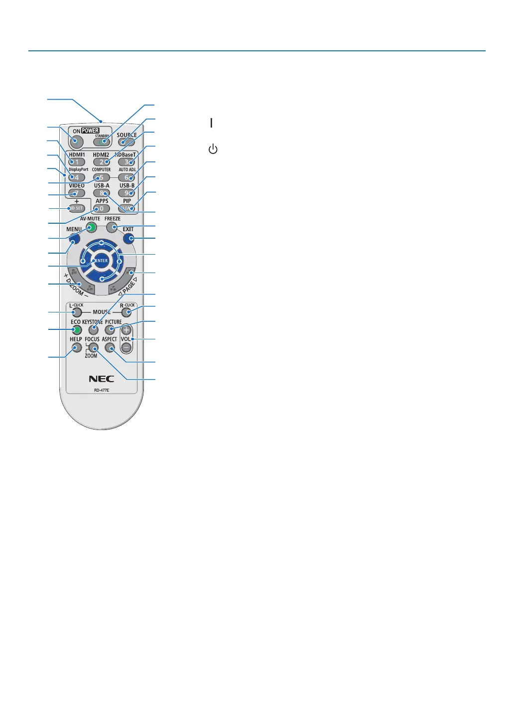 ❹ Part Names of the Remote Control