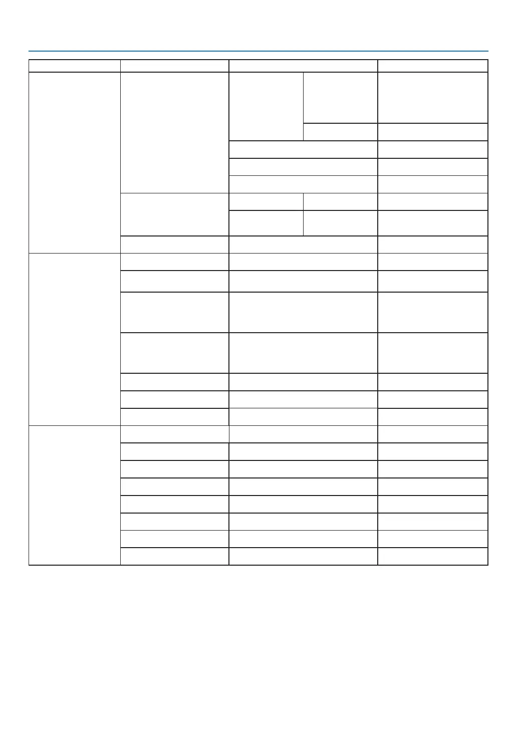 Main menu Sub-menu Setting Remarks