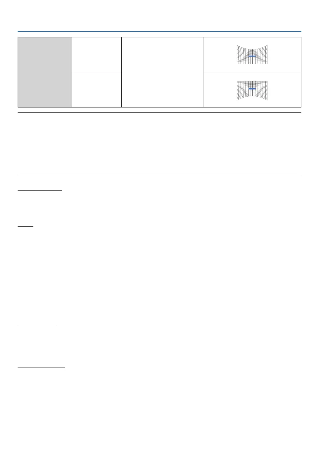 • Curved correction X offset and Curved correction Y offset can not be adjusted individually. Adjust Curved correction X offset and Curved