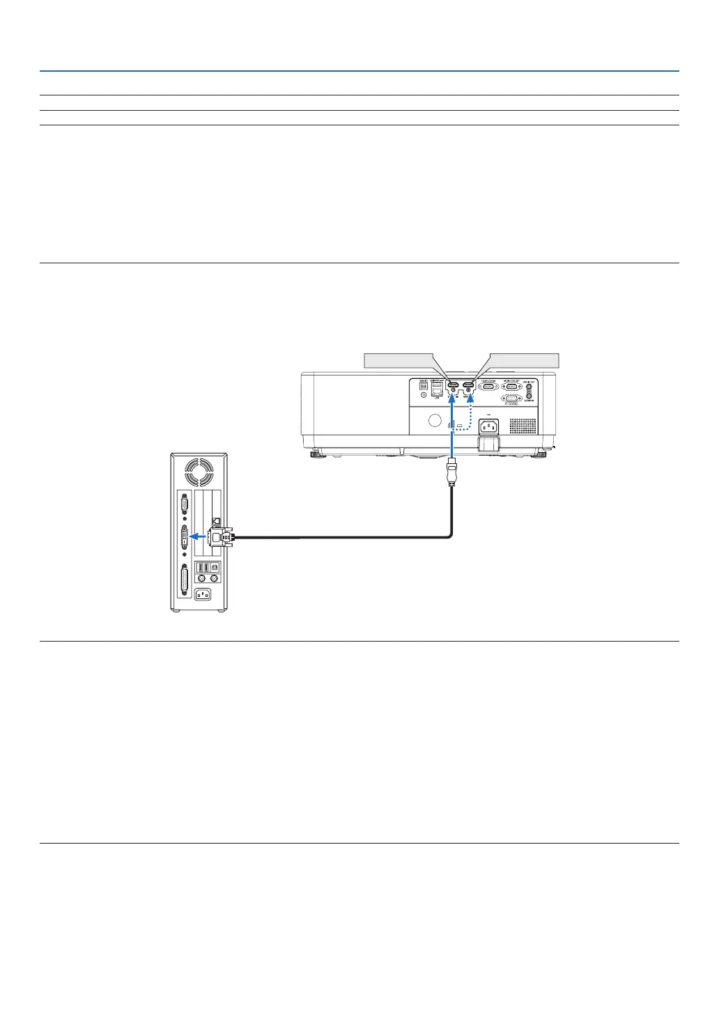 • To project a DVI digital signal: Connect the cables, turn the projector on, then select the HDMI input. Finally, turn on your PC.