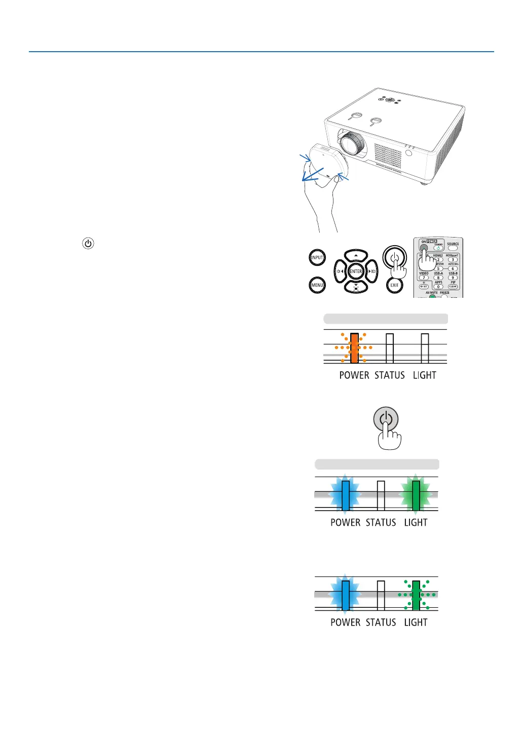 The POWER indicator will blink and the projector will