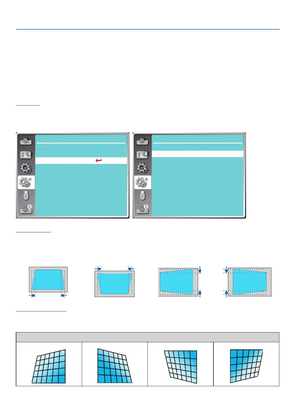 ▶ button to keystone at four corners of the screen. The four corners are looped in sequence shown below: