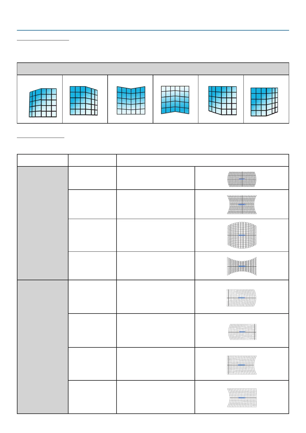 Select this function to correct the projected images with linearity uneven or vertical and horizontal bending deformation.