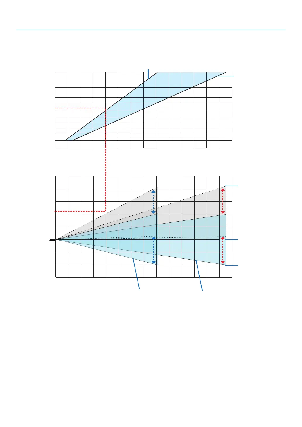 Also, from the lower table we can see that about 2.1 m are required from the projector’s lens center to the upper