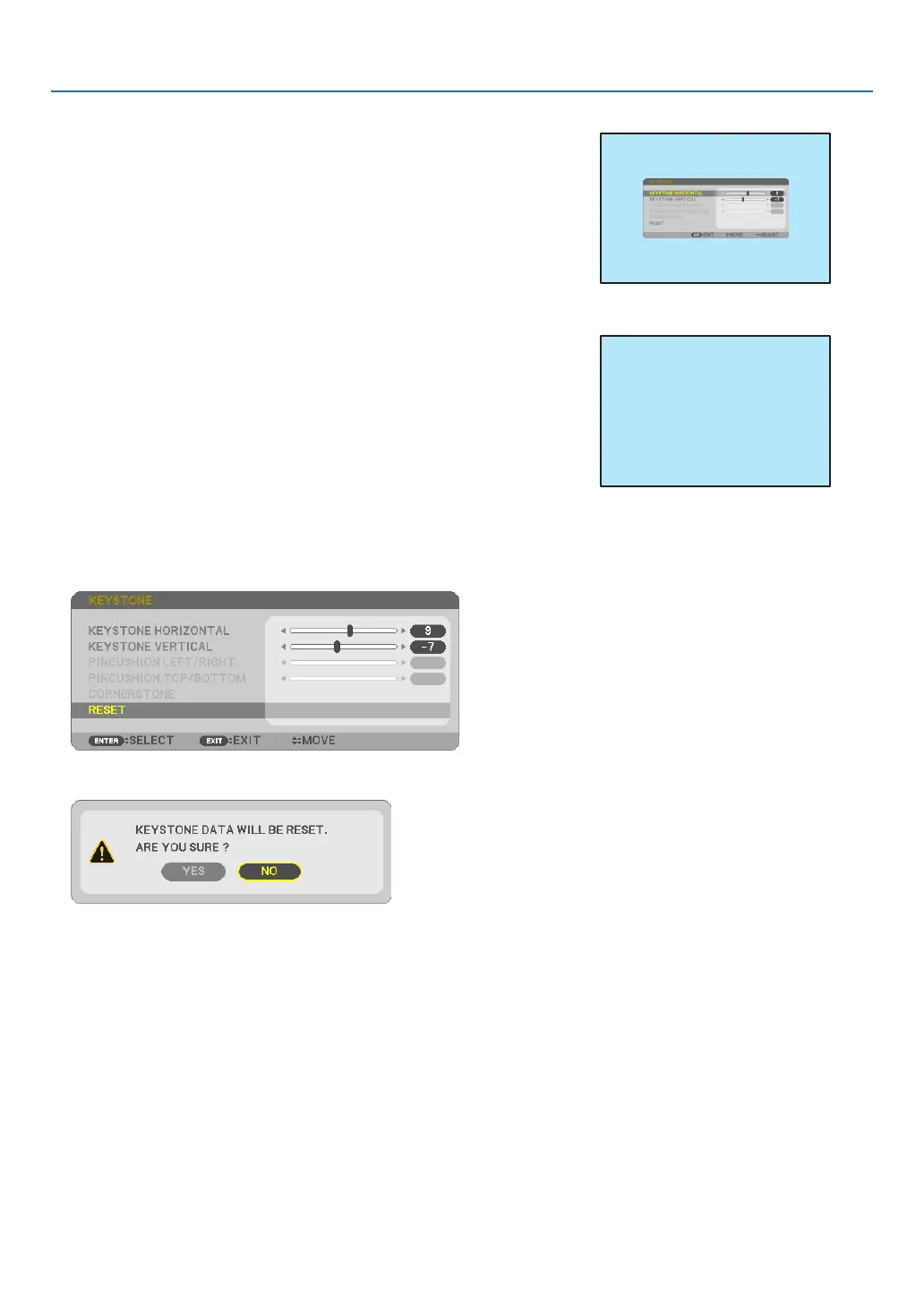 4. Press the ▲buttontoselect[KEYSTONEHORIZONTAL]andthen