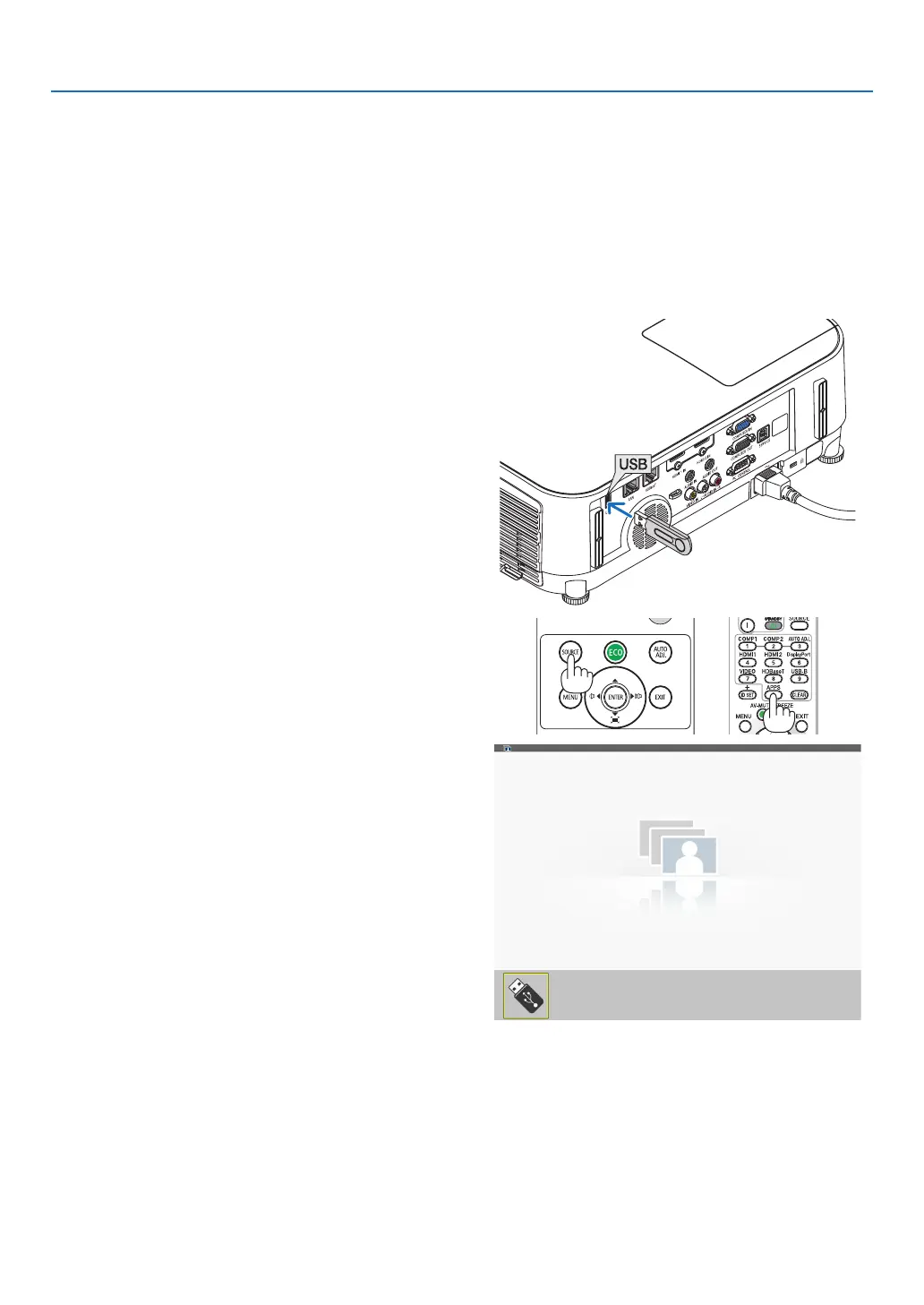 ❷ Projecting images stored in a USB memory device
