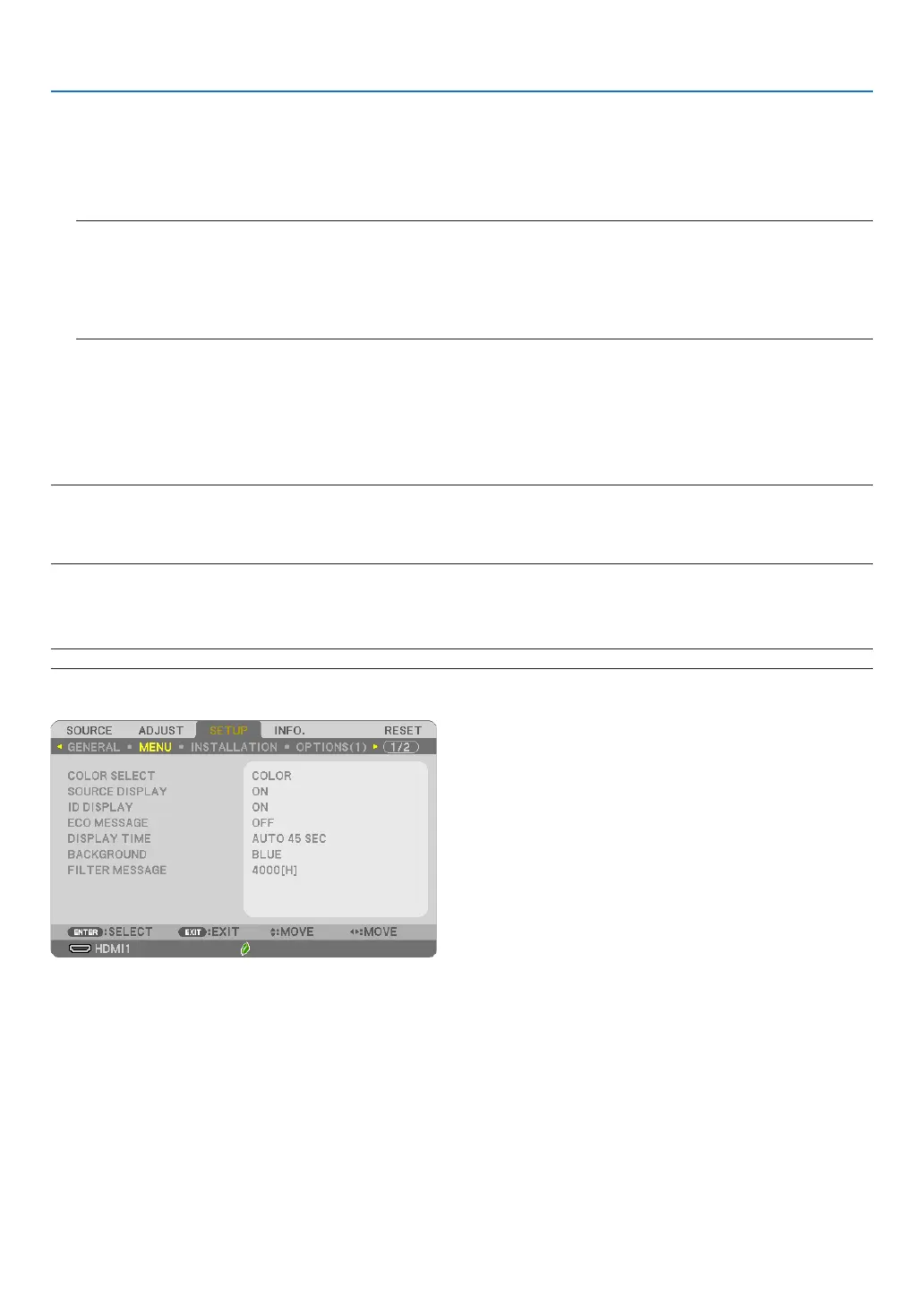 NOTE:Yoursettingwillnotbeaffectedevenwhen[RESET]isdonefromthemenu.