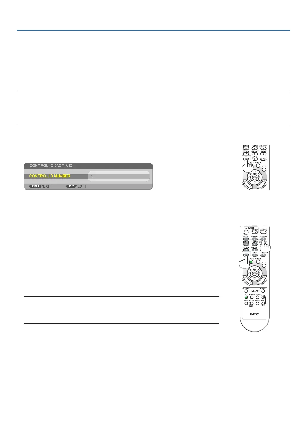 • When[ON]isselectedfor[CONTROLID],theprojectorcannotbeoperatedbyusingtheremotecontrolthatdoesnotsupporttheCONTROL