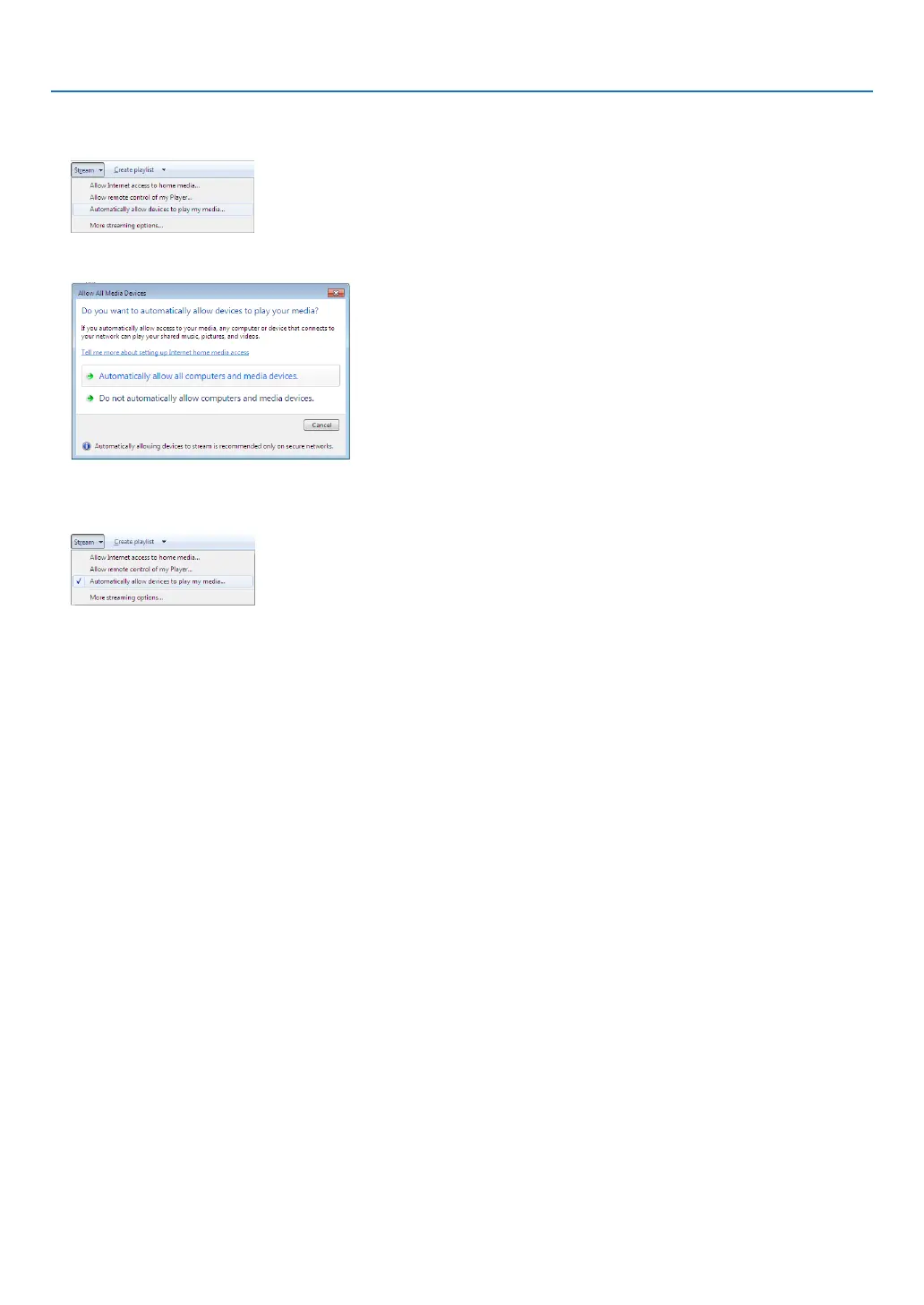 2. Select“Stream”,andthenselect“Automaticallyallowdevicestoplaymymedia”.