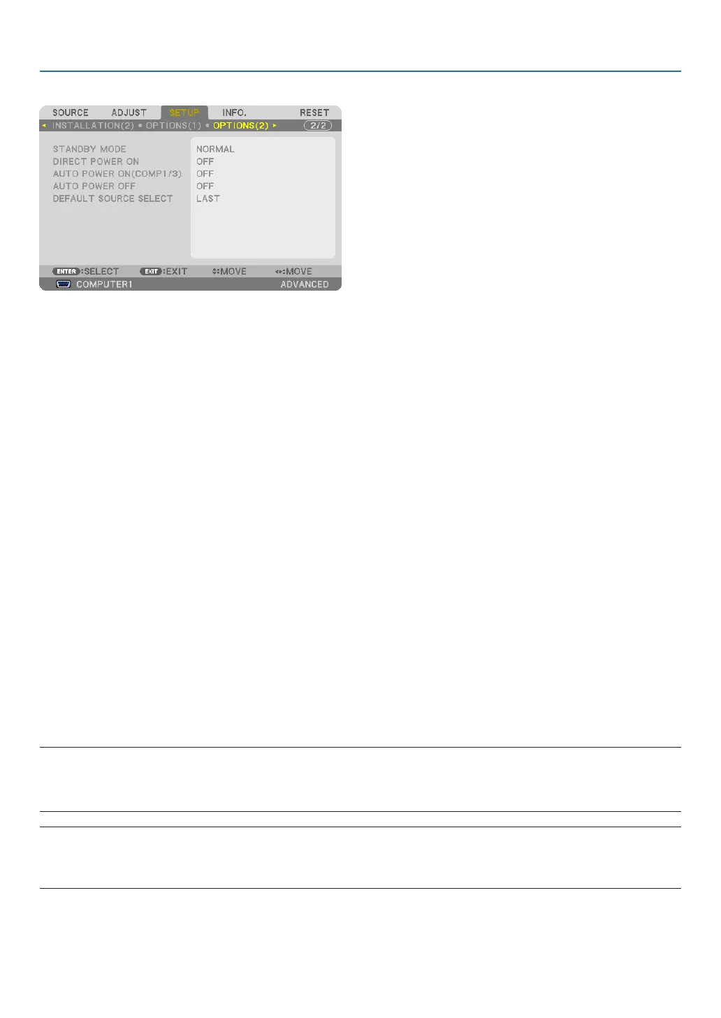 POWERON(COMP1/3)],the[STANDBYMODE]settingbecomesinvalid.