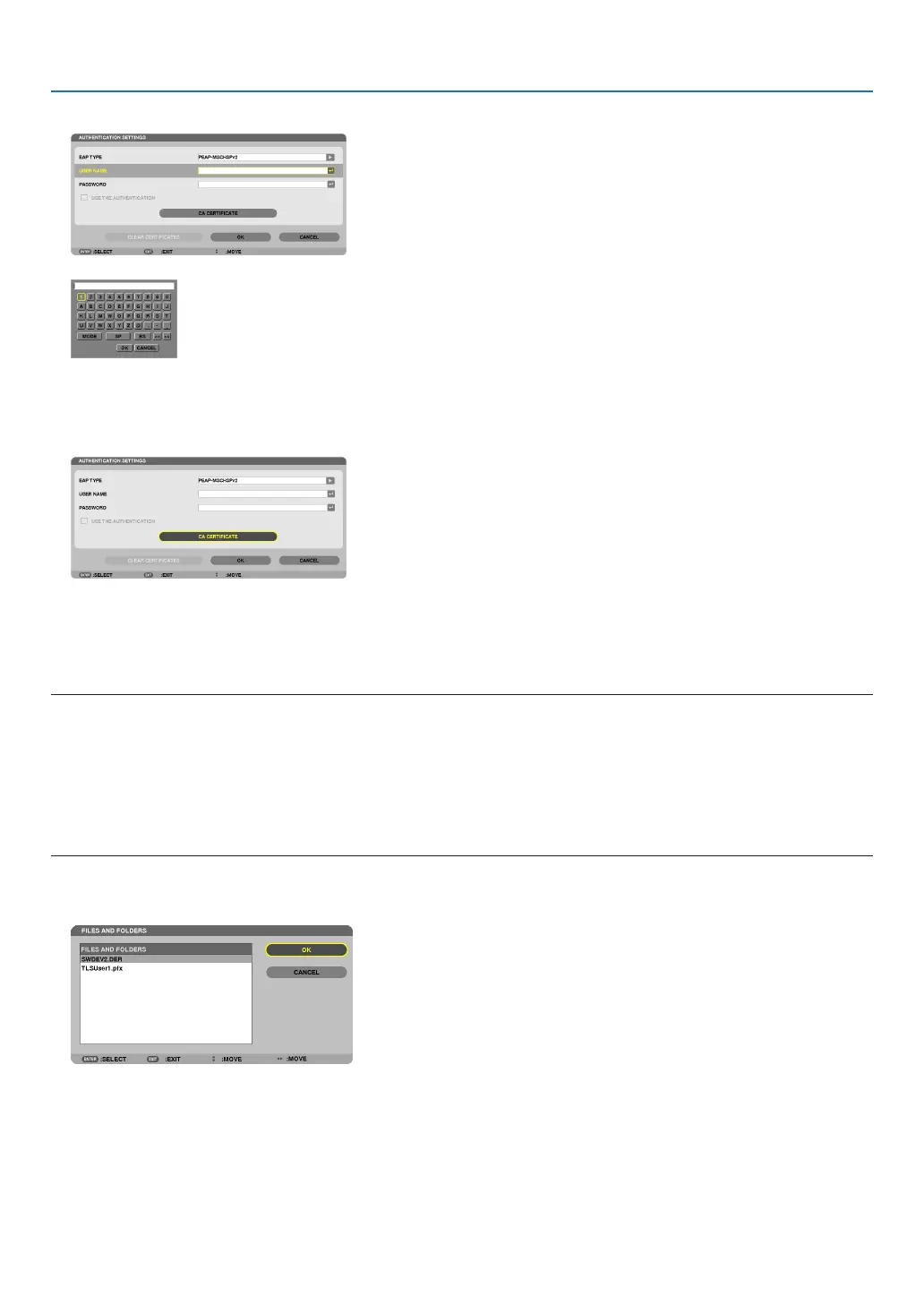 • Onceadigitalcerticatehasbeeninstalled,itsinformationcannotbedeletedevenifyoustopsettingWPA-EAPorWPA2-EAP.
