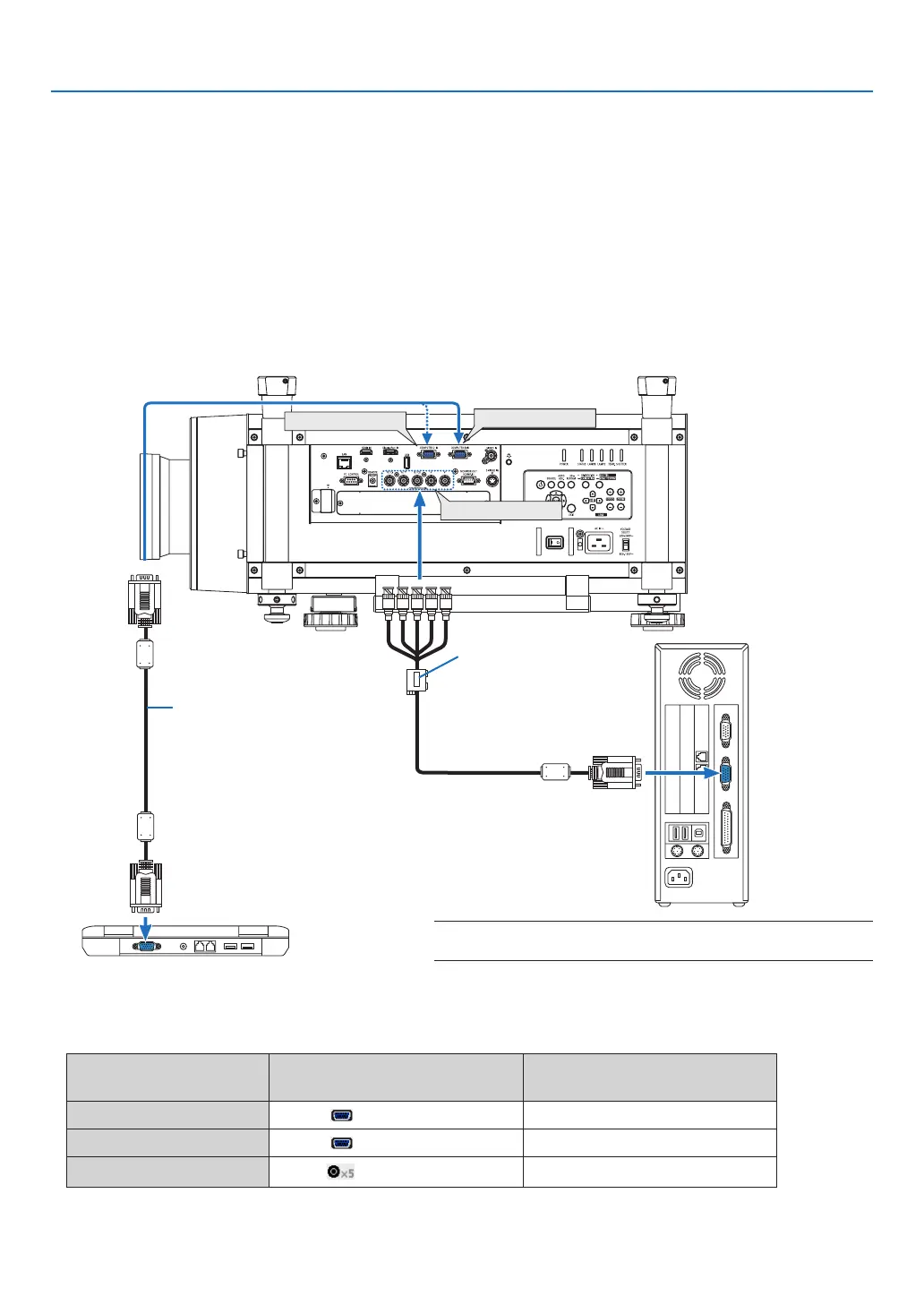 Theprojectorcanbeconnectedtoacomputerusingthecomputercable,a5xBNCcable,HDMIcableorDisplayPort