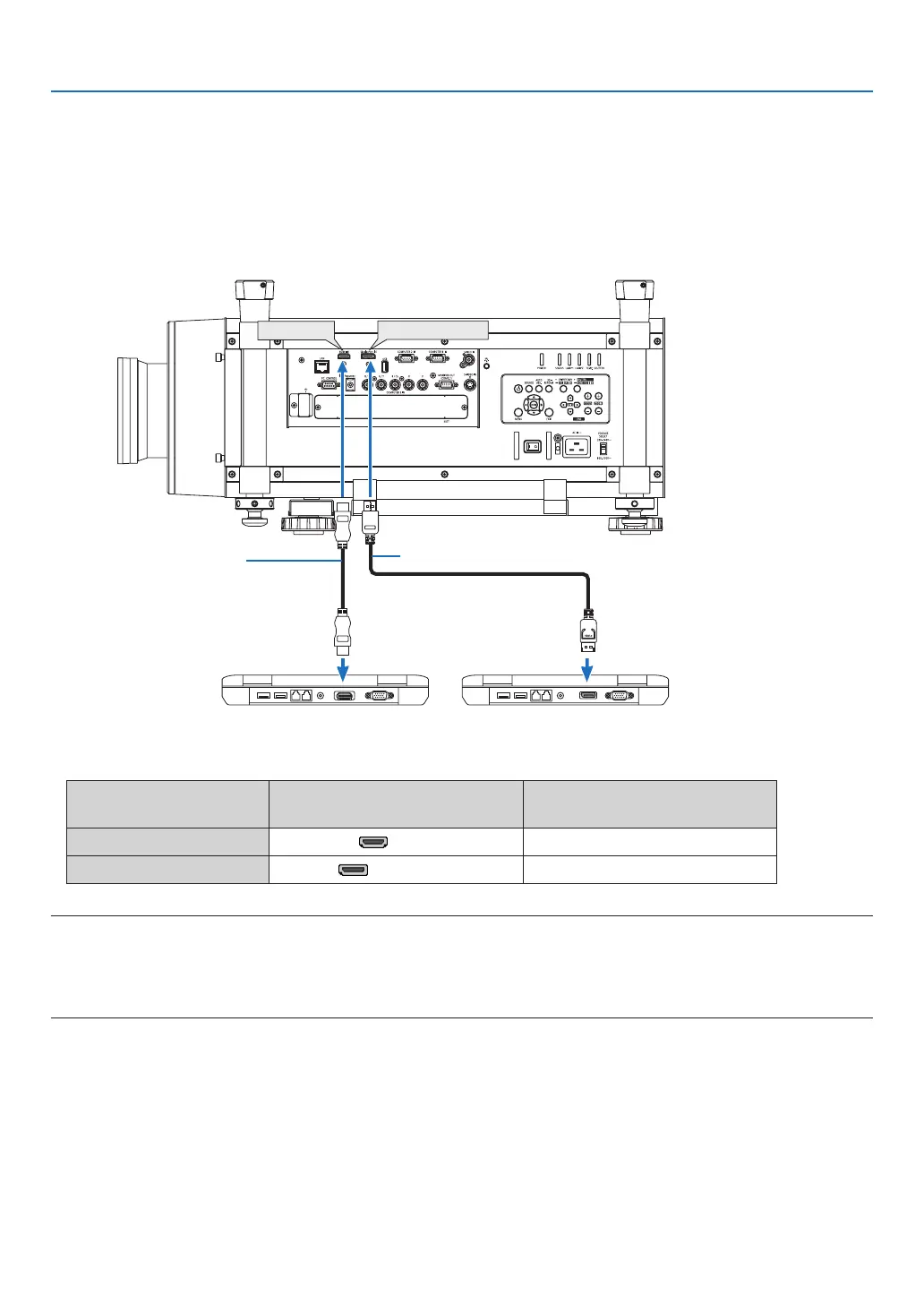 • ConnectacommerciallyavailableHDMIcablebetweenthecomputer’sHDMIoutputconnectorandtheprojector’s