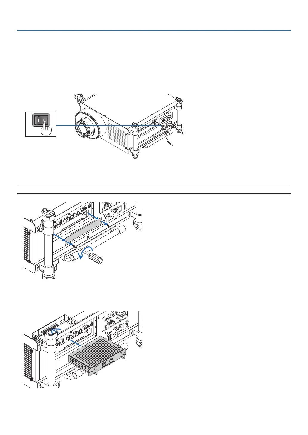 Beforemountingorremovingtheoptionalboard,besuretoturnofftheprojector,waitforthefanstostopandturn