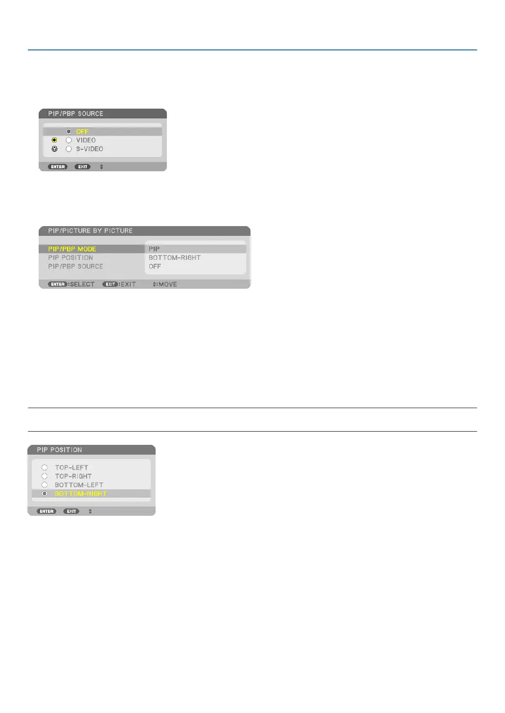 ThePIPscreenorPICTUREBYPICTURE screen will be displayed,dependingonwhichwasselectedinthe