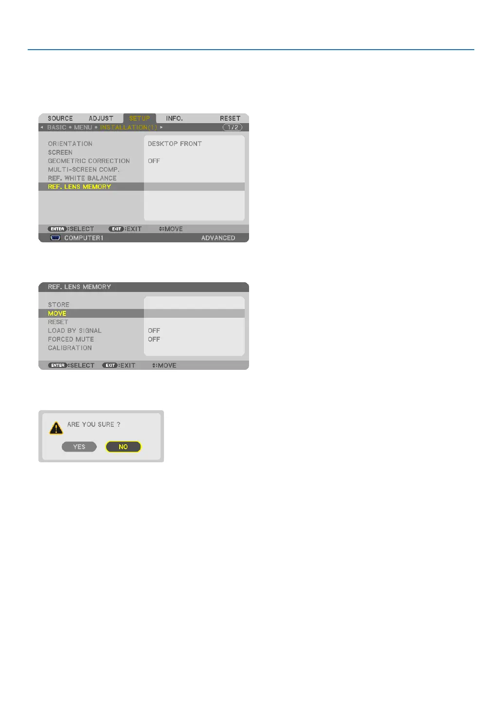 4. Pressthe▼buttontoselect[REF.LENSMEMORY]andpresstheENTERbutton.