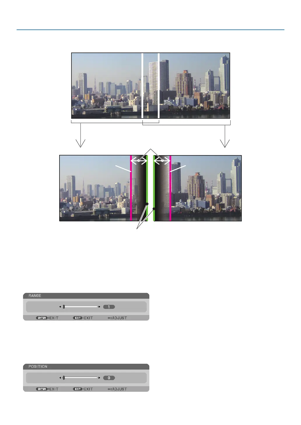 ② Adjust [RANGE] and [POSITION] to determine an area of overlapped edges of images