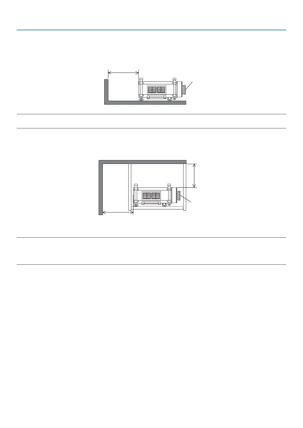1. The drawing shows the proper clearance required for the front, sides, back and bottom of the projector.