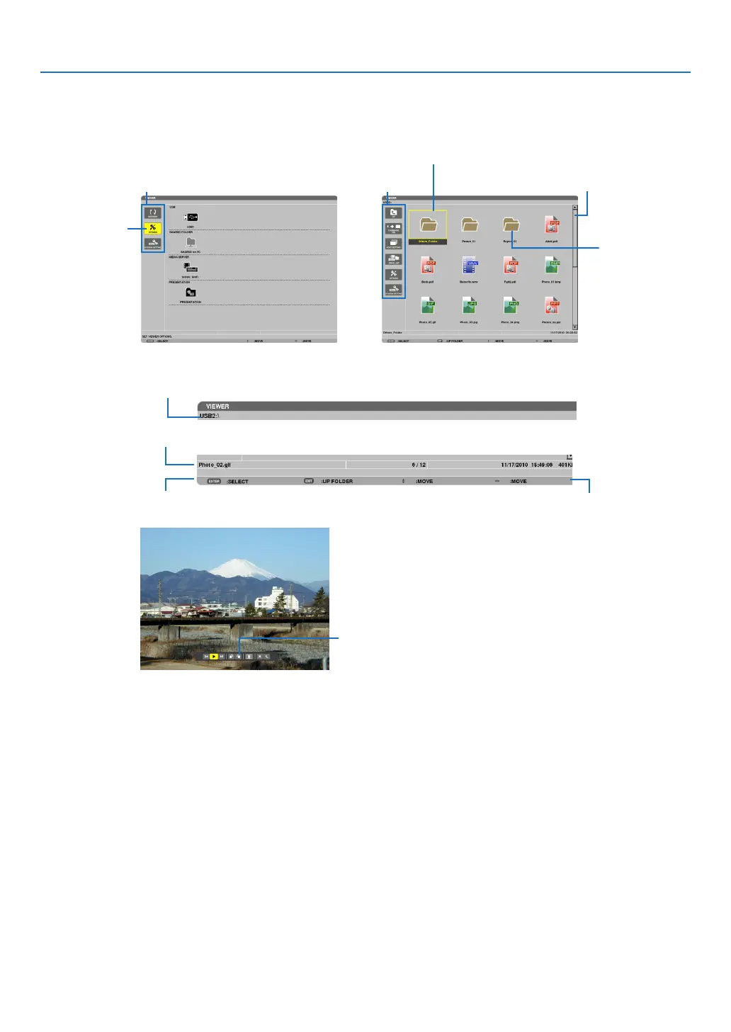 Names and functions of Viewer screen