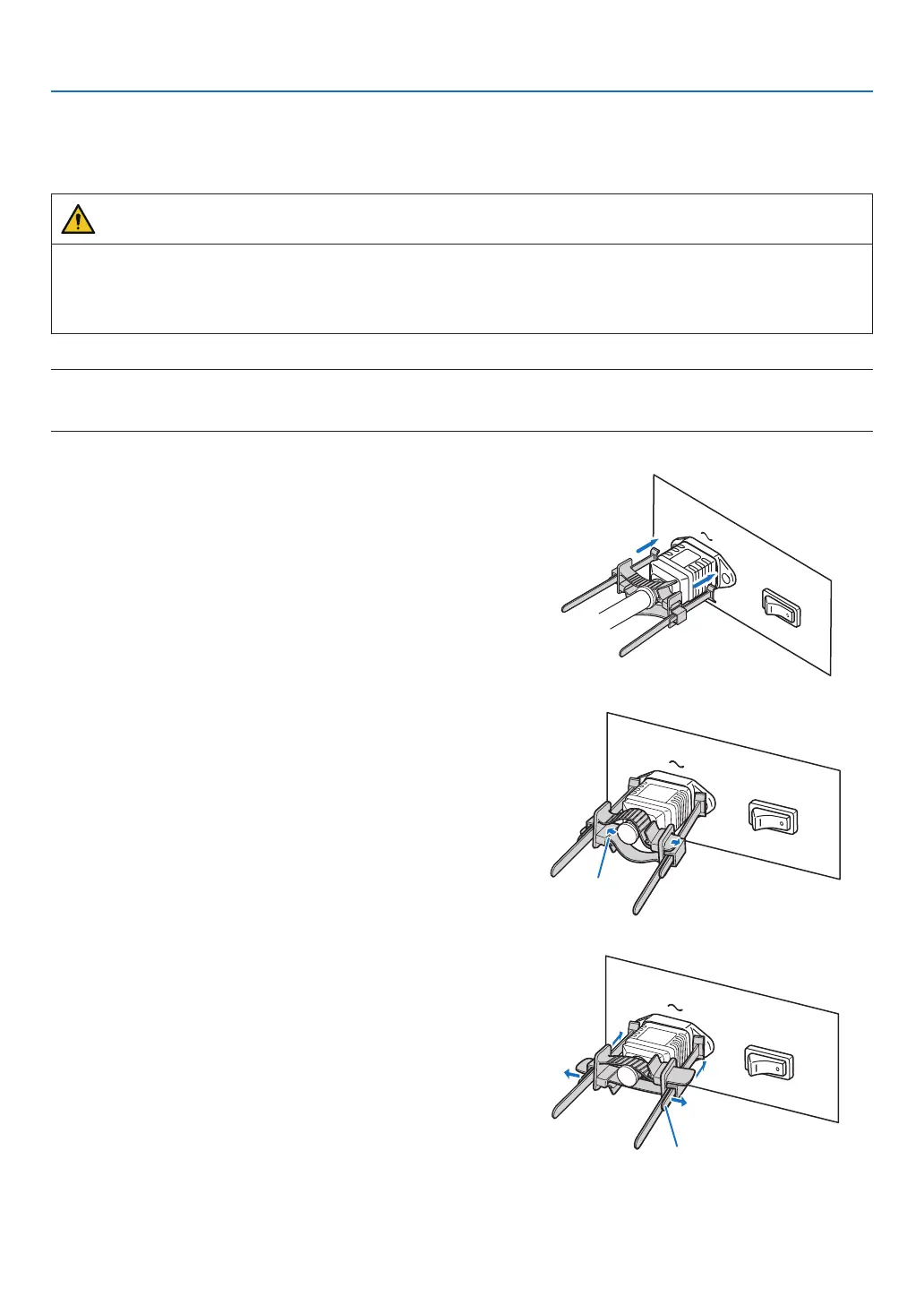 Topreventthe power cable fromaccidentlyremovingfromtheACINofthe projector, attach the supplied power cable