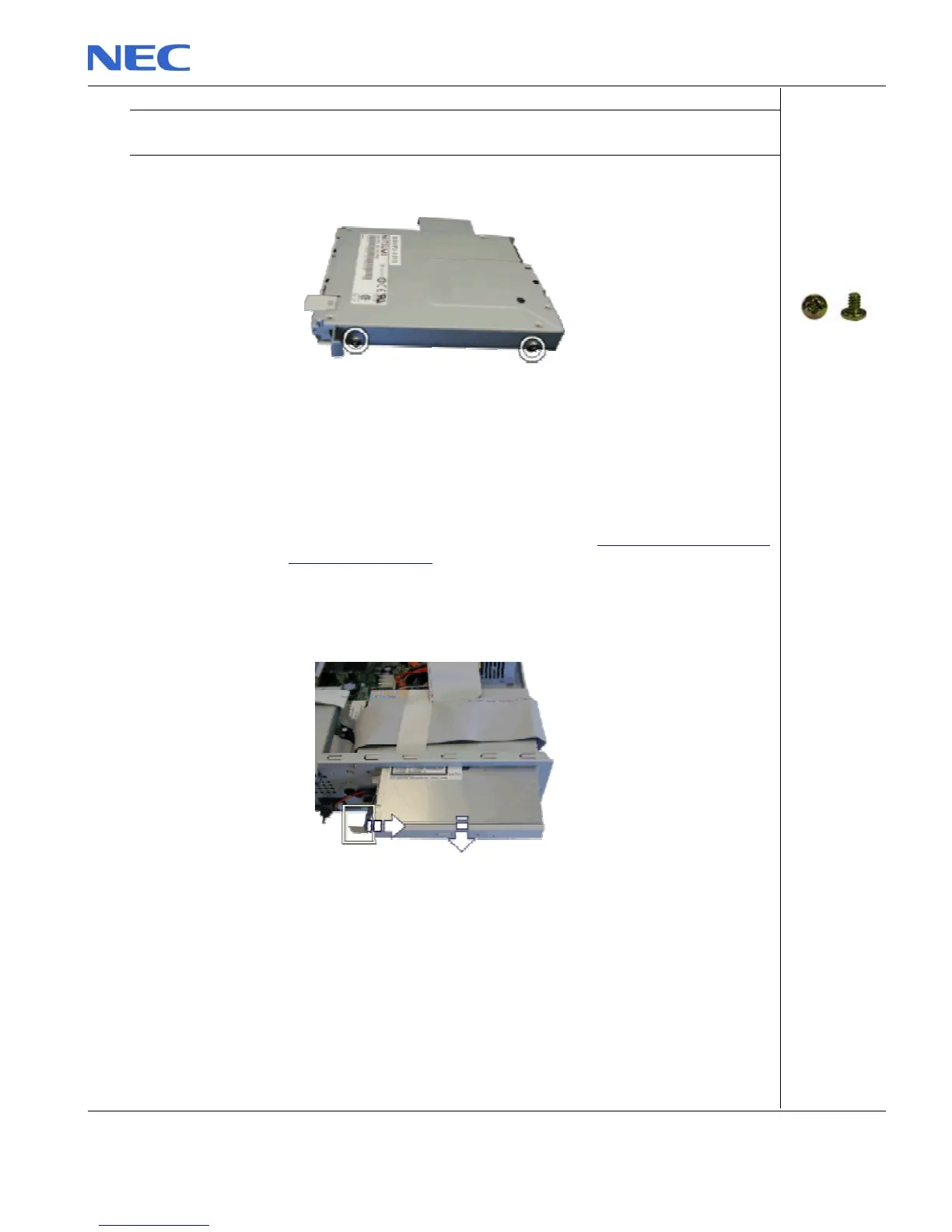 Fig. 10: Screws securing the floppy disk drive to the bracket