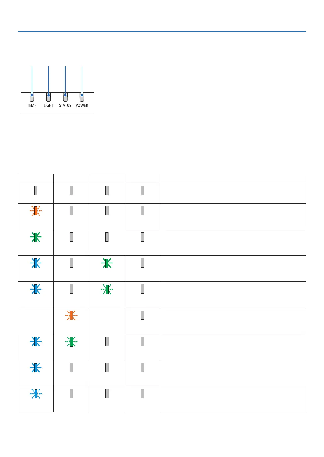 POWER STATUS LIGHT TEMP. Projector status