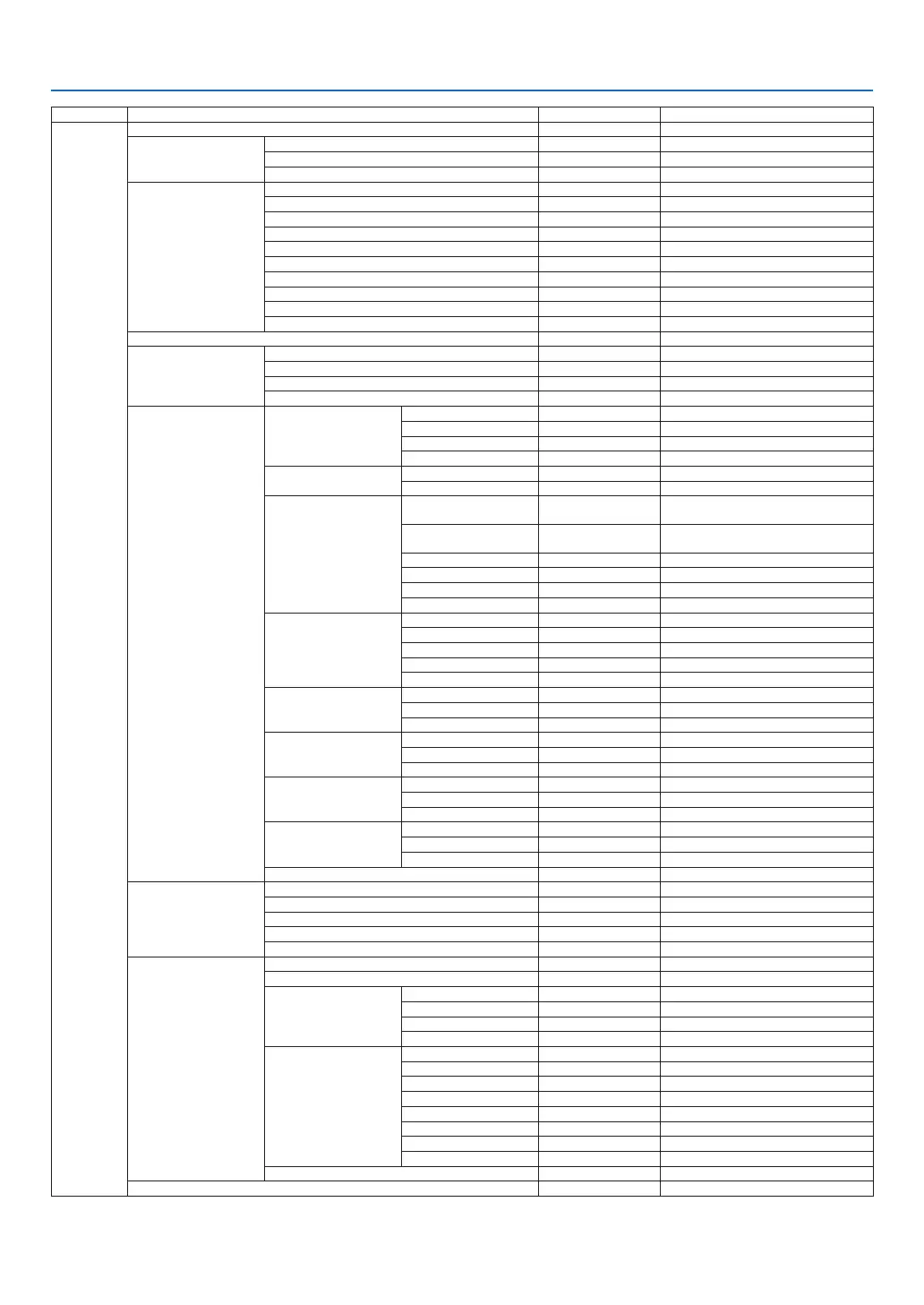 TOP MENU SUB MENU FACTORY DEFAULT SELECTIONS