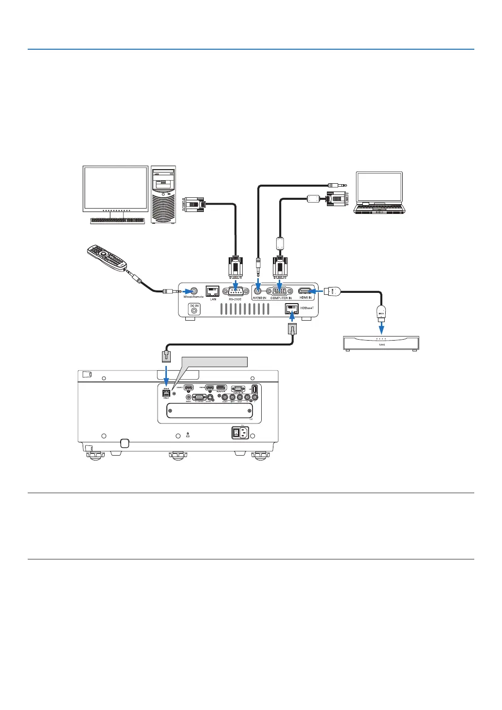 UseaLANcablesoldcommerciallytoconnecttheEthernet/HDBaseTportoftheprojector(RJ-45)toaHDBaseT