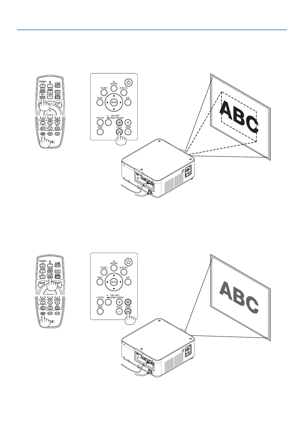 • Ontheremotecontrol,whilepressingontheCTLbutton,pressonVOL/FOCUS(+)or(−)button.