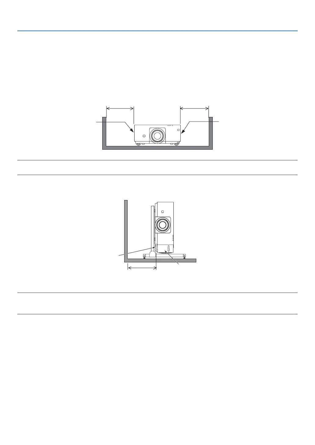 • Thedrawingshowstheproperclearancerequiredforthefront,backandtopoftheprojector.