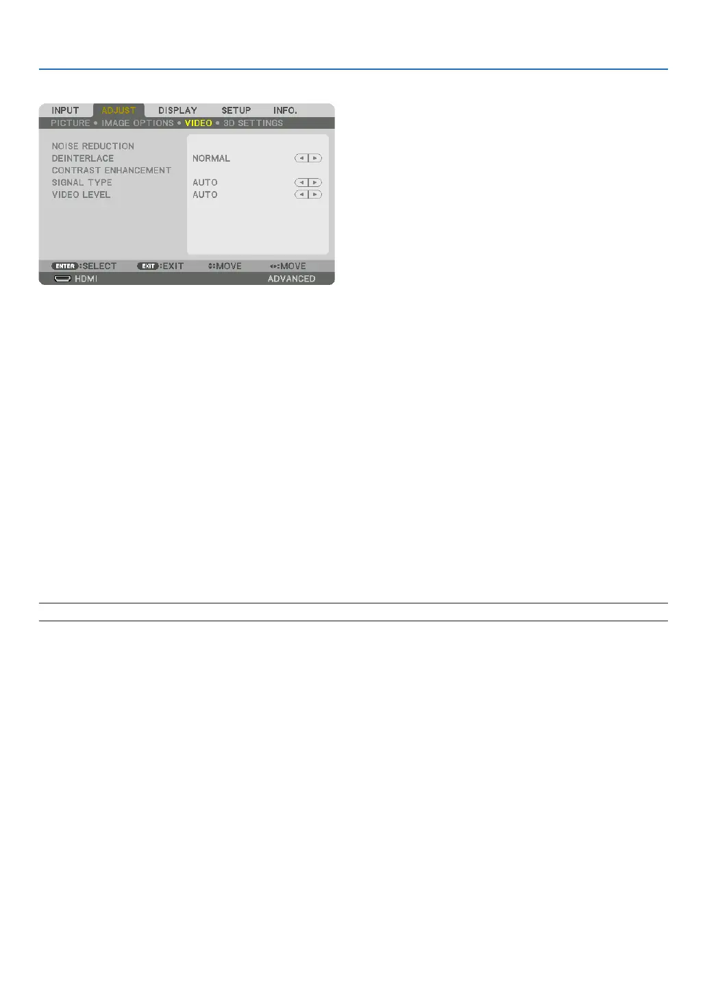 Whenprojectingavideoimage,youcanusethe[NOISEREDUCTION]functiontoreducethescreennoise(roughness