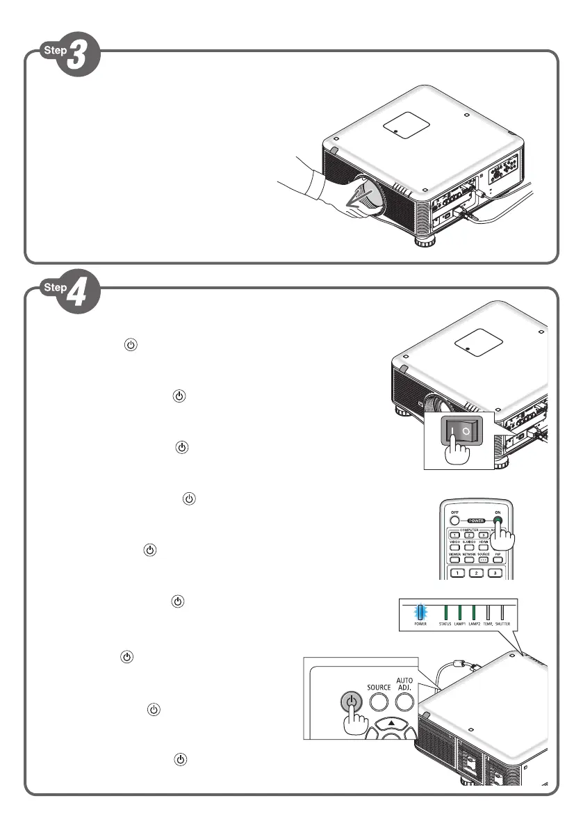 1. 주 전원 스위치를 ON 위치(I)로 누릅니다.