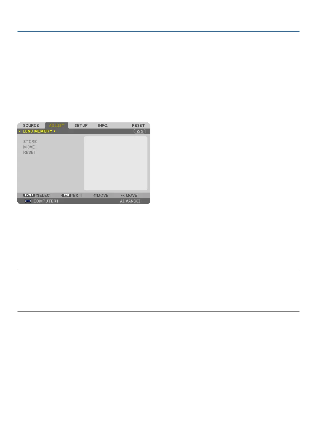 ThisfunctionservestostoretheadjustedvaluesforeachinputsignalwhenusingtheLENSSHIFT,ZOOMandFO-