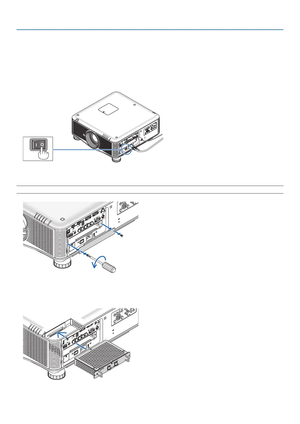 Beforemountingorremovingtheoptionalboard,besuretoturnofftheprojector,waitforthefanstostopandturn