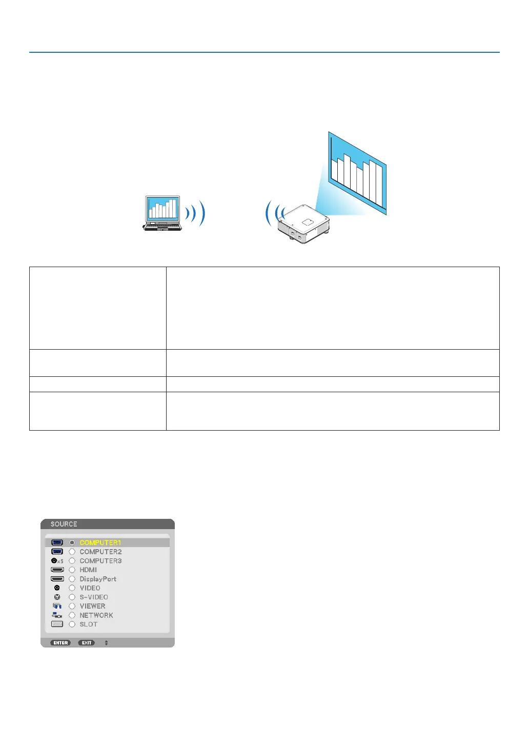 ByselectingtheprojectorconnectedtothesamenetworkasthatofyourPC,thePCscreenimagecanbeprojected