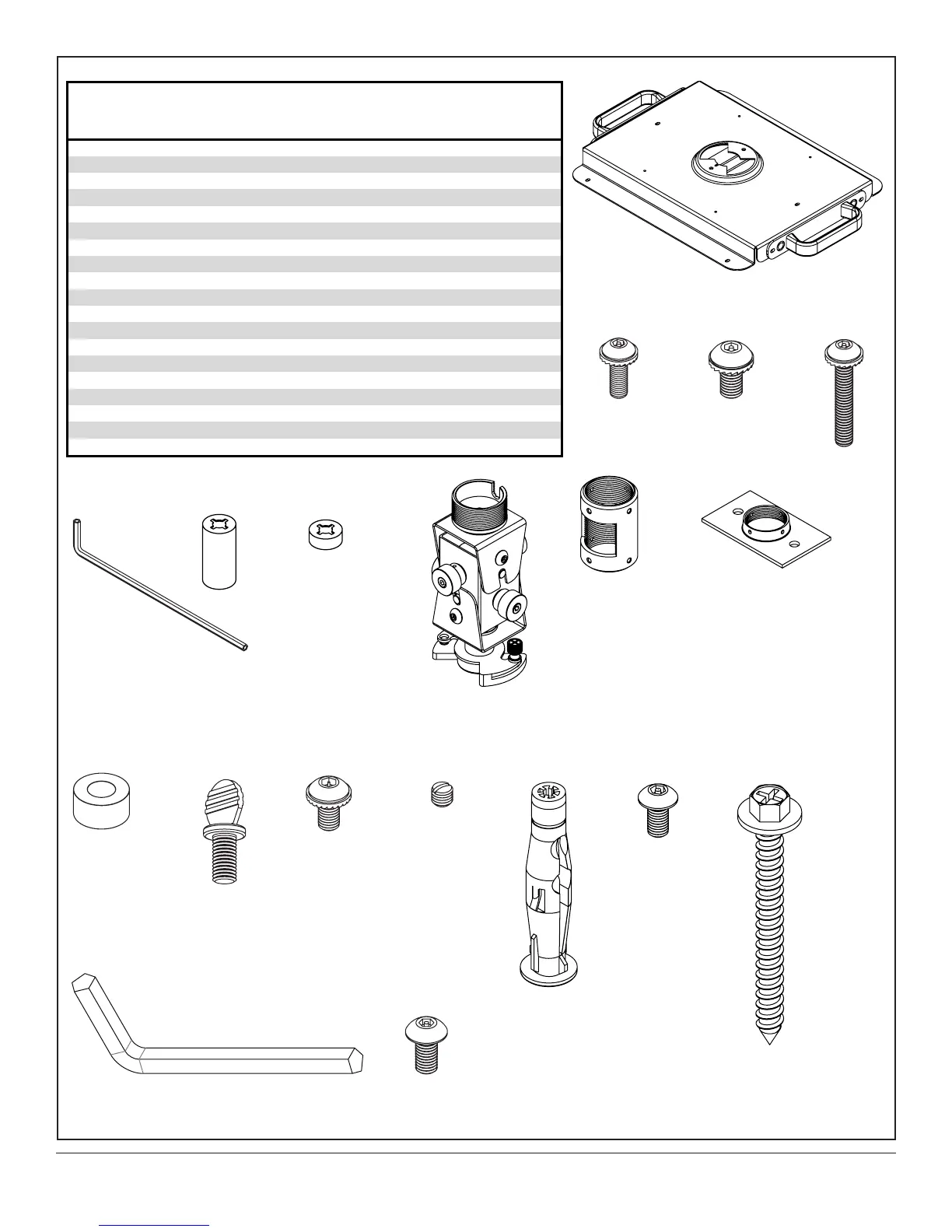 Beforeyoustartmakesureallpartslistedareincludedwithyourproduct.