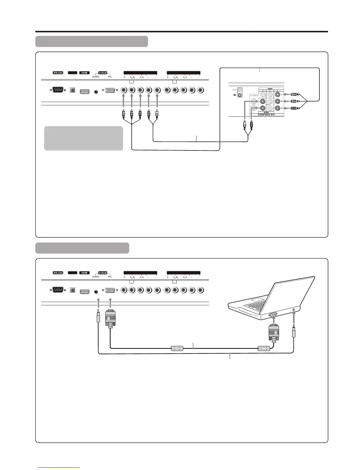 Connect the Component Video cable between the Y, Cb/Pb, Cr/Pr input jacks on the unit and Y, Cb/Pb, Cr/Pr output jacks on
