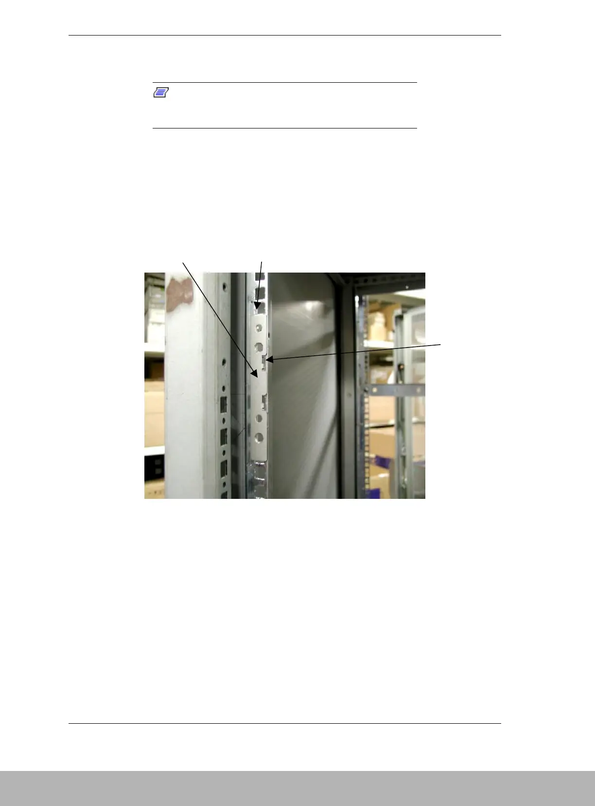 the rail support hook are centered within the square holes of the rack front