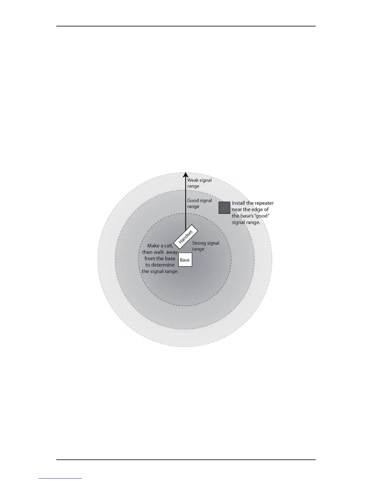 signal becomes weaker. The optimum location for the repeater is as far from the base as possible