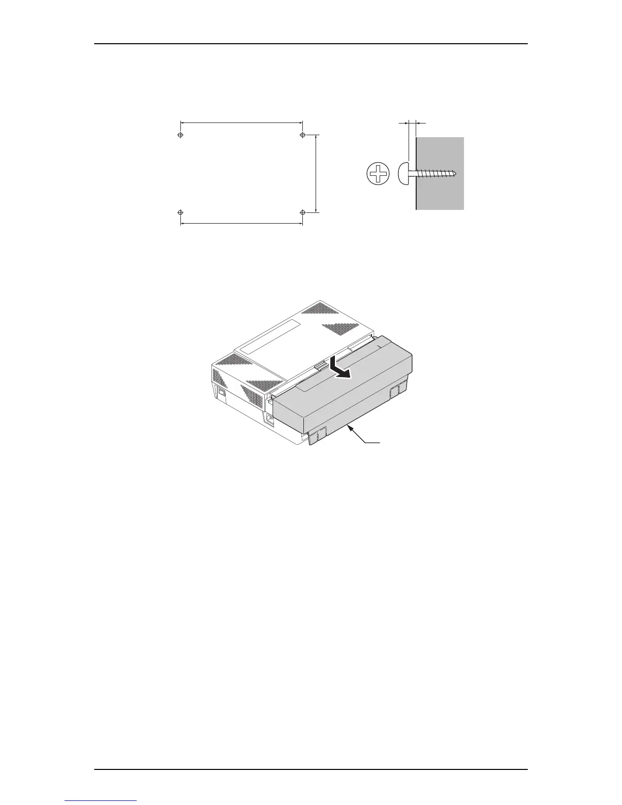 2. Install four screws into the wall. The screw heads must stand off from the wall about 2.5 mm