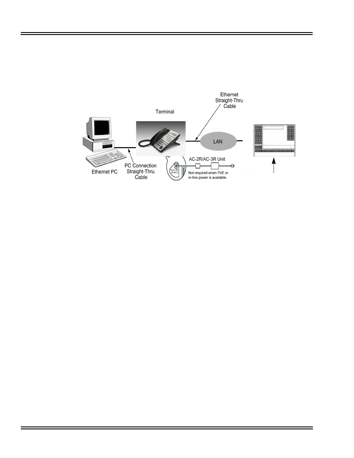 As illustrated in Figure 9-2 Typical Network IP Connection, the IP telephone has two