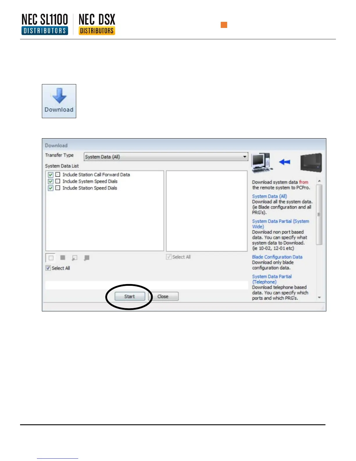 9. Once the system data has been retrieved and downloaded, click the Close Button.