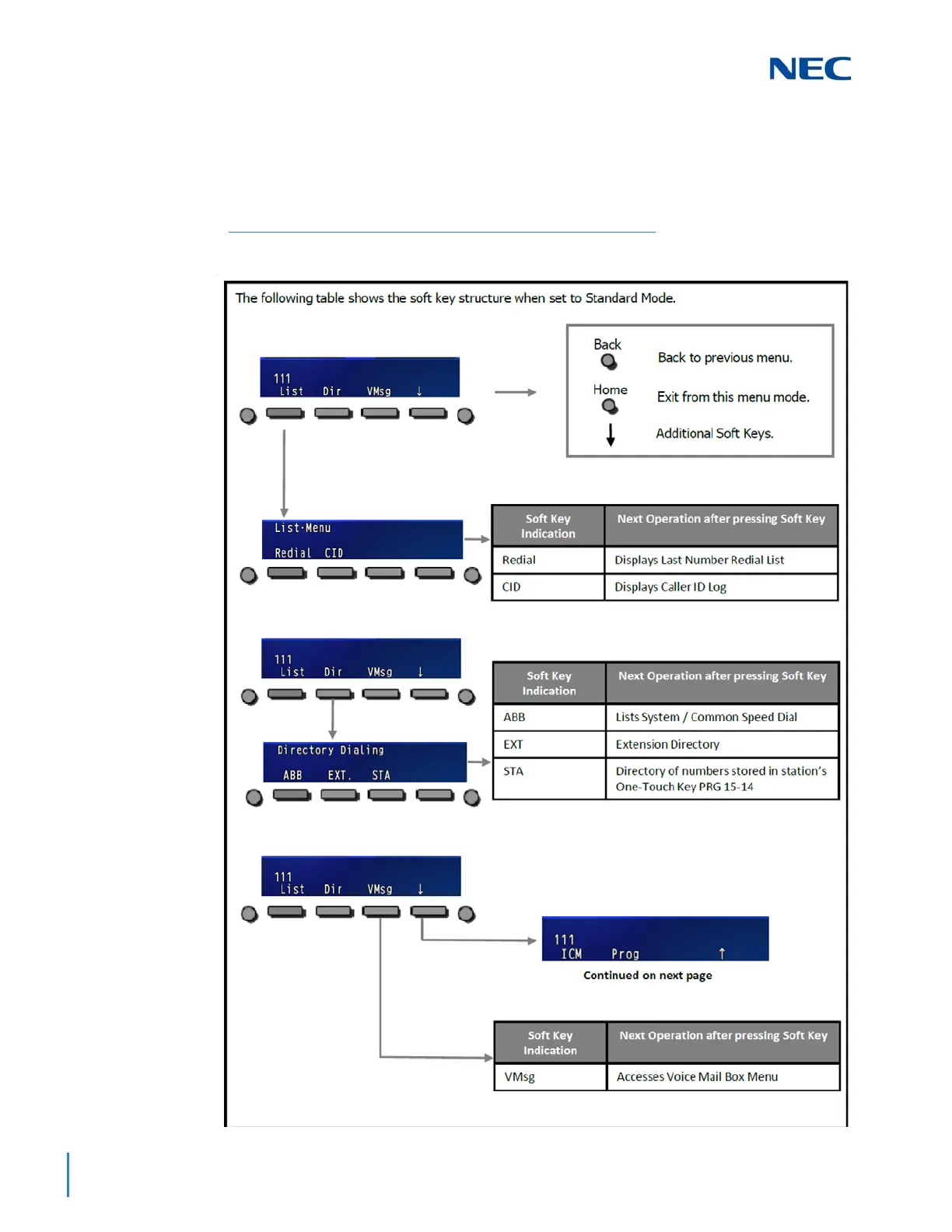 NEC SL2100 - SECTION 7 SOFT KEYS OPERATION - STANDARD MODE; 7.1 Soft Key Structure When PRG 15-02-60 is set to Standard Mode
