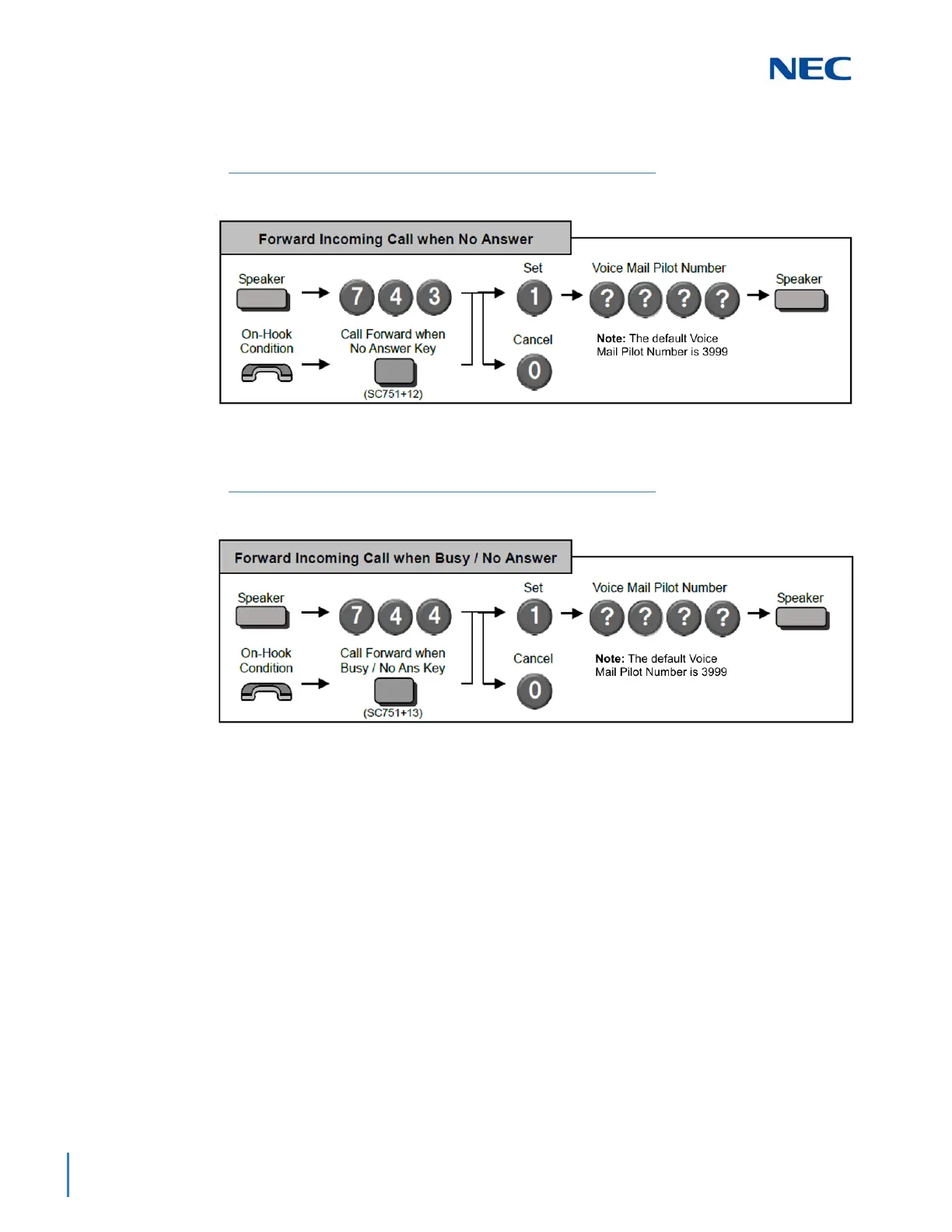 NEC SL2100 - Forward Incoming Call When no Answer; Forward Incoming Call When Busy; no Answer