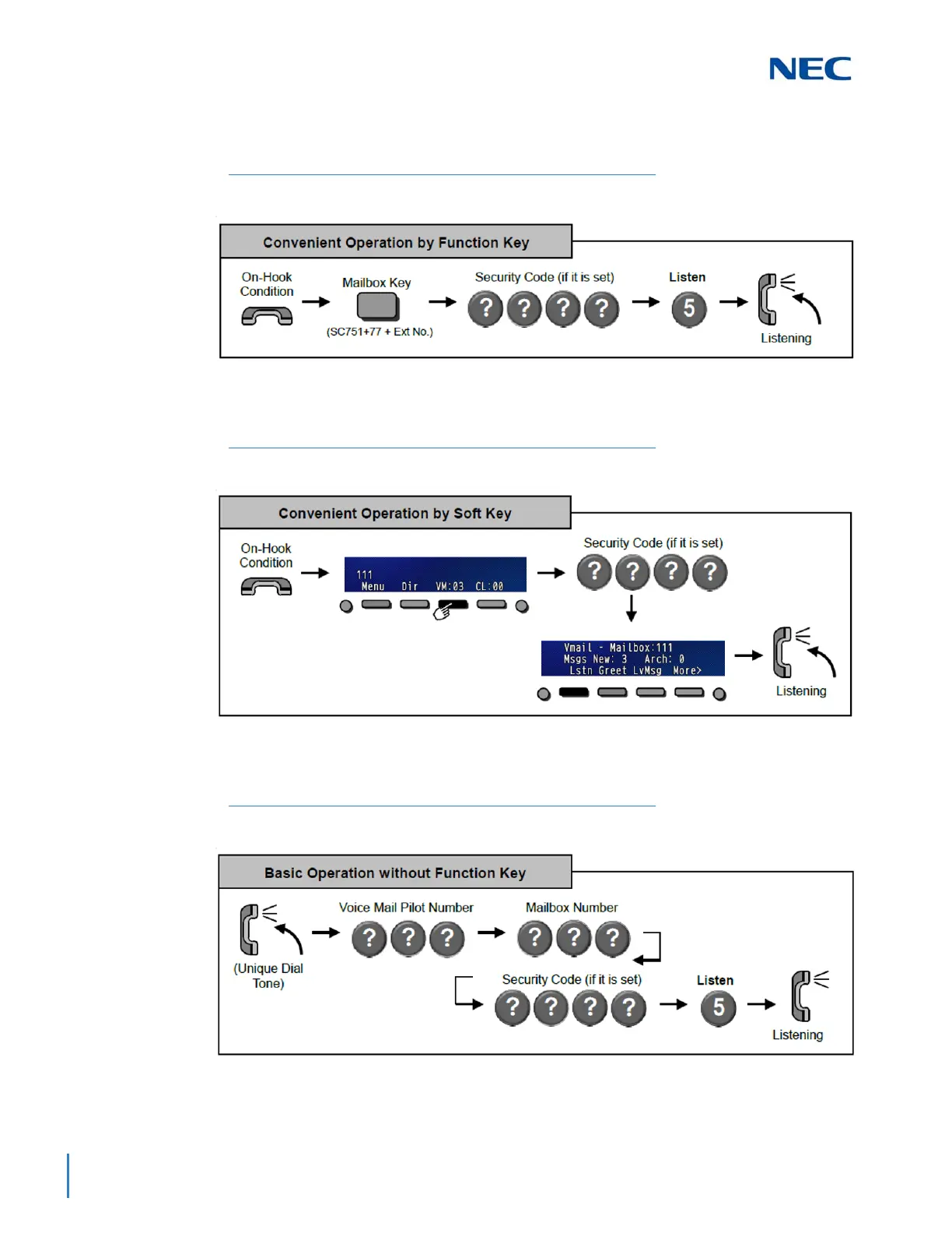 NEC SL2100 - 8.4 Mailbox Security Code; 8.5 Listen to Messages Left in Your Mailbox