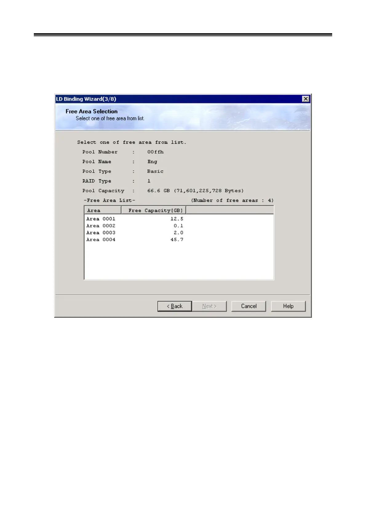 Selecting a pool with multiple unused areas and clicking the [Next] button on the “Pool Selection” screen displays